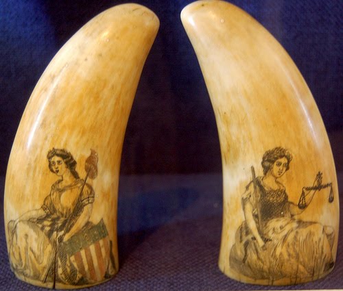 Other sea animal ivories were also used as alternatives for rarer whale teeth. Walrus tusks, for example, may have been acquired in trade from indigenous walrus hunters.